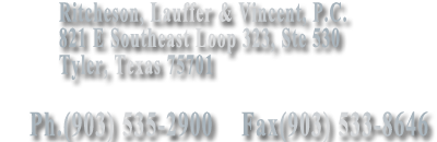 Ritcheson, Lauffer & Vincent, P. C., was formed in 2005 by experienced and well-established East Texas attorneys.